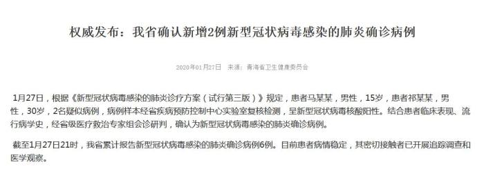 青海确认新增2例新型冠状病毒感染的肺炎确诊病例(图)