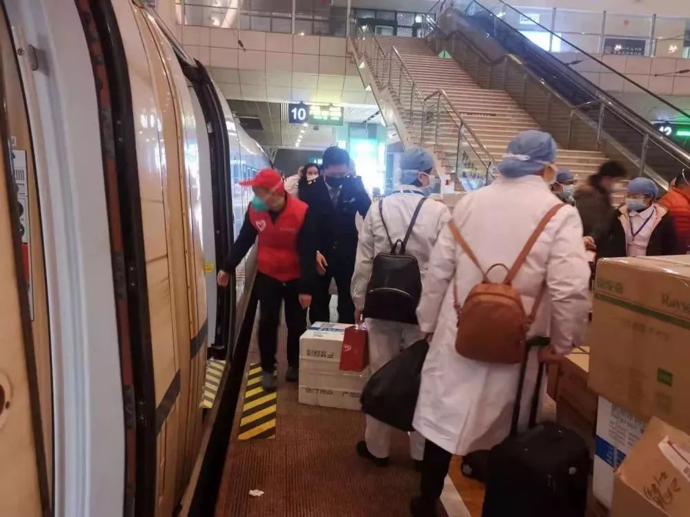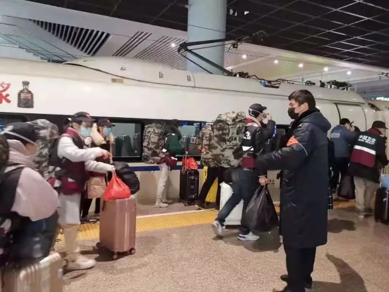 医疗队员们搭乘高铁紧急出发