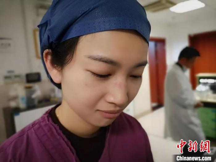 鼻子上压出压疮的护士陈秀。 余杭一院供图