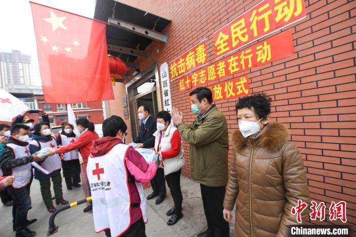 当日下午,山西省红十字会启动向志愿者发放医用口罩仪式,将山西正一康生物科技有限公司捐赠的一部分医用口罩,共计2000只,发放给医院、学校等志愿者,共同助力抗击新型冠状病毒感染的肺炎疫情。随后,志愿者走进社区进行消毒,向环卫工人发放了口罩,并向大家宣传防控知识,号召大家共同做好抗击新型冠状病毒感染的肺炎疫情的工作。