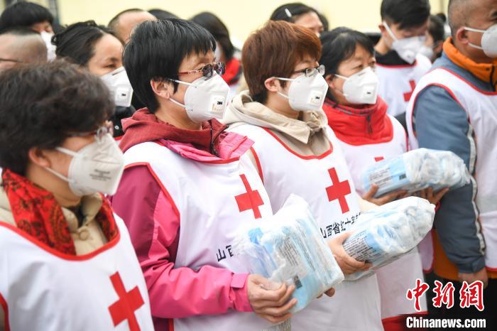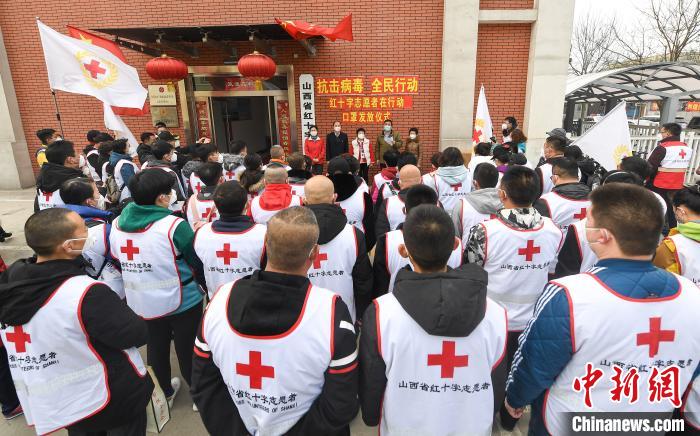山西省红十字会启动向志愿者发放医用口罩。 武俊杰 摄