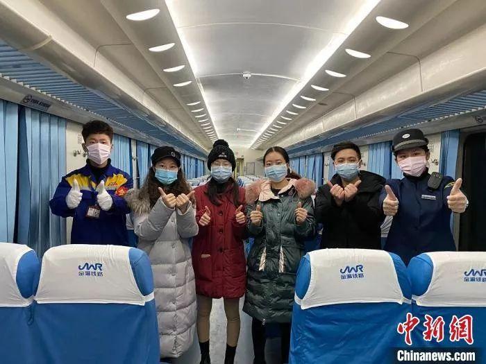 资料图:列车工作人员和前往武汉的医务人员。 金温铁路供图