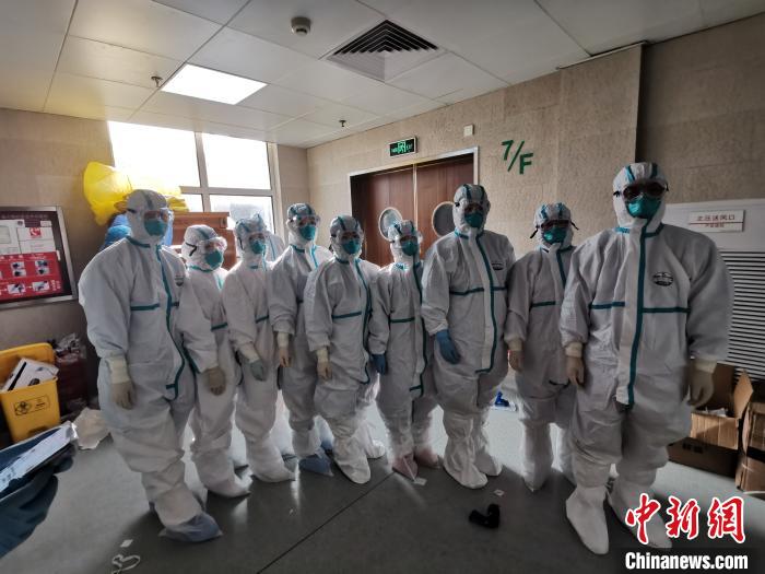 河北省援鄂抗疫医疗队28日正式上岗接诊武汉市第七医院的3个病区和重症监护室。图为部分队员合影。河北省援鄂抗疫医疗队供图
