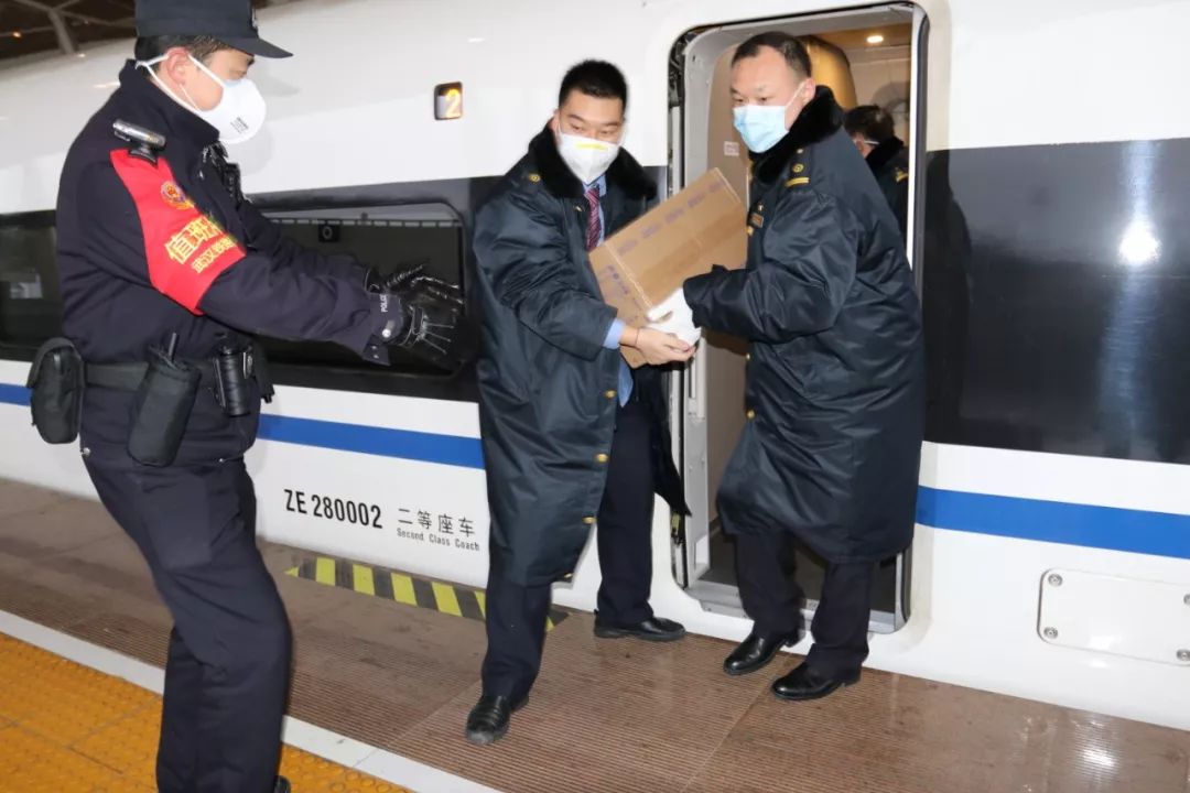 1月27日12时04分,广州南开往郑州东的G2056次列车到达武汉站,该站36名早早等待的“头雁”突击队员迅速卸下广州中医系统捐赠的100箱医疗药品,转运到武汉中西医结合医院的运输车,以最快时间送达疫情防控一线。