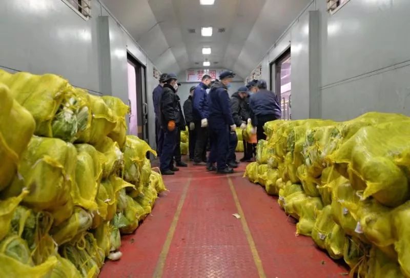 沈阳局集团公司对加挂的行李车重点整修,集中对各处货仓消毒,并连夜组织人员装车,利用沈阳北至广州东的Z12次旅客列车的行李车,计划分10次将130吨东北大白菜运往武汉。