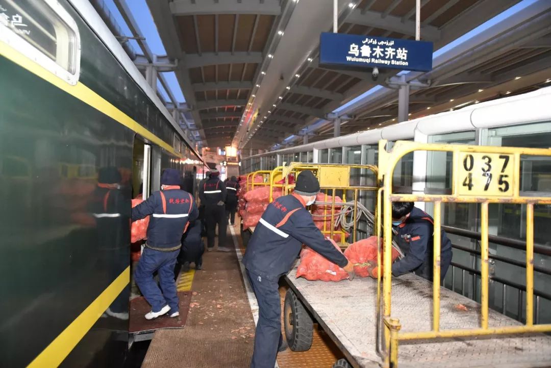 1月25日起,乌鲁木齐局集团公司每天都将数量不等的洋葱、洗手液、药品等物资在乌鲁木齐站装车,搭乘途经武昌站的旅客列车行李车发往武汉,用于应对疫情防控。