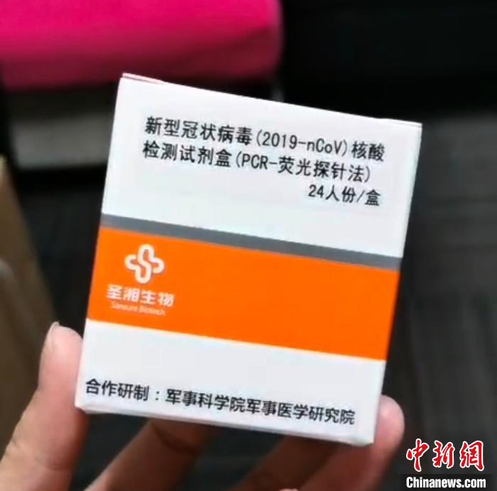中新网北京1月29日电 (李纯 庄颖娜)记者29日获悉,由中国人民解放军军事科学院军事医学研究院与圣湘生物科技有限公司共同研制的新型冠状病毒(2019-nCoV)核酸检测试剂盒(RT-PCR荧光探针法),28日通过国家药品监督管理局应急审批,获得医疗器械注册证书。