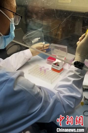 使用新型冠状病毒核酸检测试剂盒进行检测。 图片由军事科学院军事医学研究院提供 摄