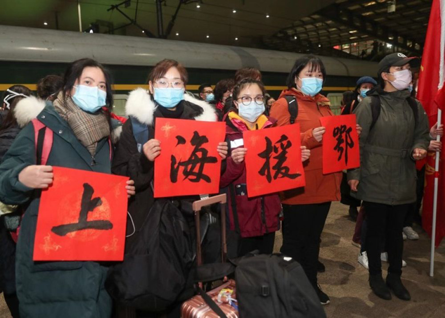 除夕夜,首批上海医疗队136人出发前往武汉。