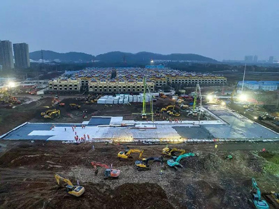 火热的雷神山医院建设现场。