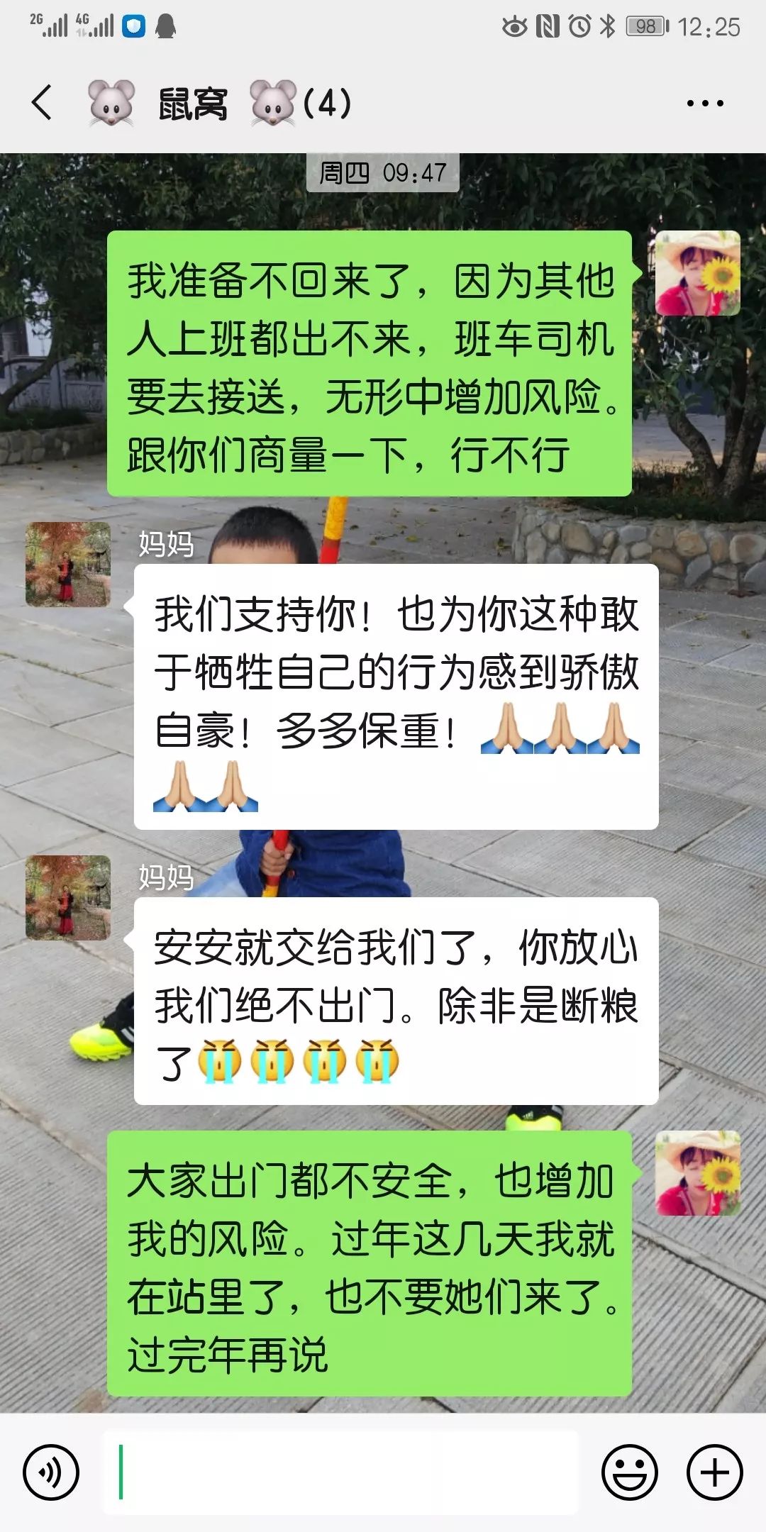 刘海生在微信群里发过这样一段感言:“老婆和孩子春节都在医院参加抗战疫情,心里压力好大!给自已和家人默默的鼓个劲,加个油。我们一定会平安的渡过疫情危机,抗战一定会取得胜利!祝家人安好,祝同学们安好,祝全国人民安好!对抗疫情!”