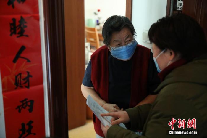 1月29日,在北京市东城区东华门街道韶九社区,社工在为居民普及防治新型冠状病毒感染的肺炎疫情的相关知识。北京多个社区出台相关措施,积极做好新型冠状病毒感染的肺炎疫情防控工作。中新社记者 蒋启明 摄