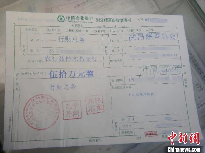 图为聂拉木县向武汉市武昌区捐款50万元人民币。 聂拉木县委宣传部