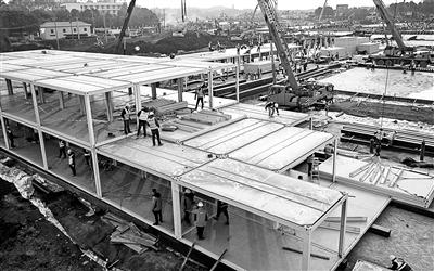 截至1月29日16时,现场场地平整和回填全部完成。板房基础混凝土浇筑完成约90%,已经完成300多个箱式板房骨架安装,同时,场外正在抓紧板房拼装,目前已完成约400个,这些拼装好的板房吊至现场可直接安装。水电暖通、机电设备等材料全面到位,且同步开始作业。供图/新华社