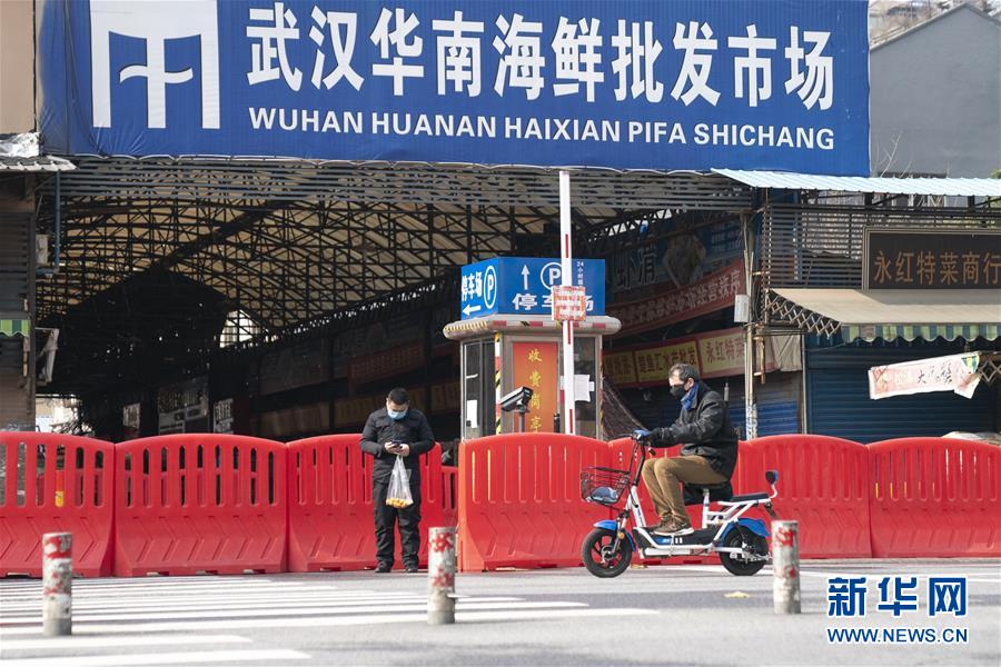 1月29日,市民经过已经被封闭的武汉华南海鲜批发市场。 新华社记者 熊琦 摄