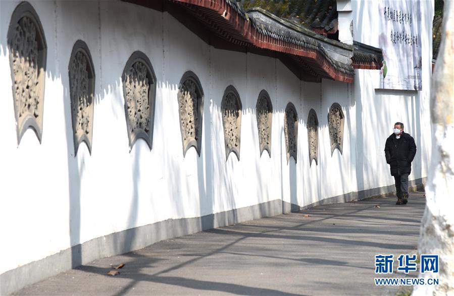 1月29日,天气放晴,一名男子在武汉街头行走。 新华社记者 程敏 摄