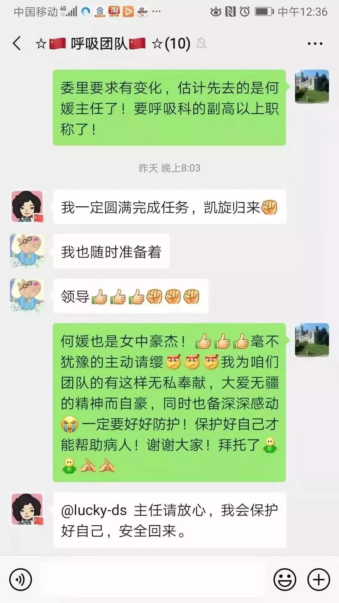 “我报名,请让我去!”这是医务科、护理部接到报名回复时,出现频次最多的话语,果断而坚决。这份毫不犹豫,体现出广大医务人员的精气神:使命在肩,勇敢逆行!为他们点赞,祝愿他们平安归来!