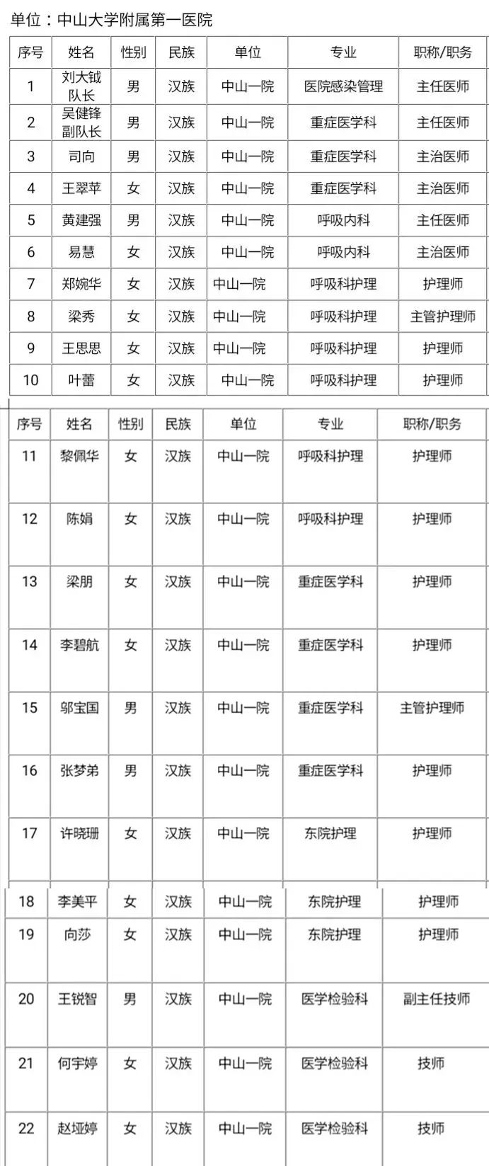↑ 中山大学孙逸仙纪念医院医疗队名单