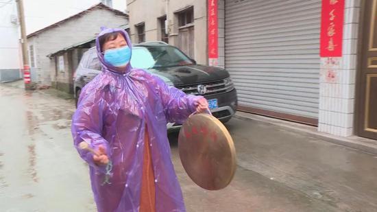 一大早,碧湖镇缸窑村村监会主任夏莲娇就手拎铜锣,将防疫知识通过方言喊村的方式,宣传到村里的家家户户。