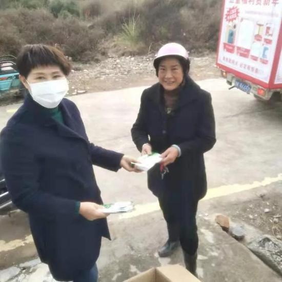 1月29日上午9点,吴美凤在村口发放自费购买的500个口罩。到下午4点左右,口罩全部发完。村民们纷纷表示,现在口罩很难买到,这真是雪中送炭呐!