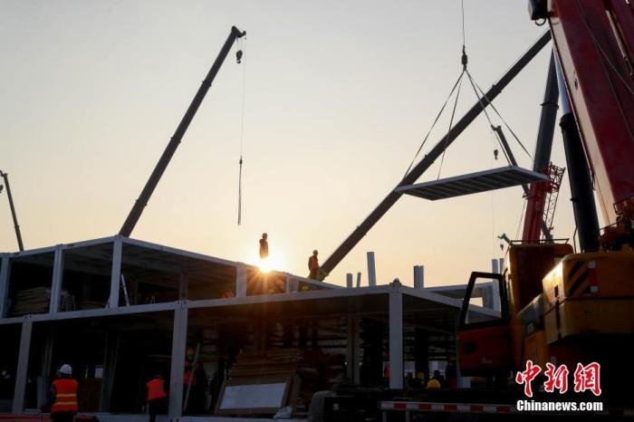 1月30日,武汉火神山医院施工现场,各项施工项目在全速推进中。中新社记者 张畅 摄