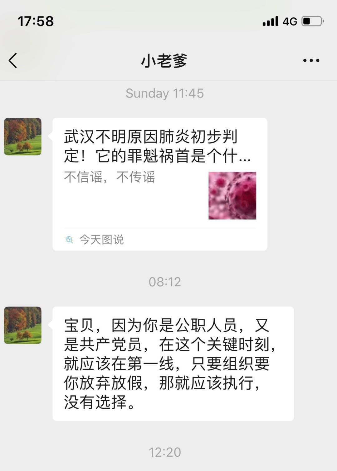 毛毛同志是单身在沪青年关员,原本1月23日离沪回家与家人团圆。在无情疫情面前,毛毛父亲给她发来了深情的嘱托: