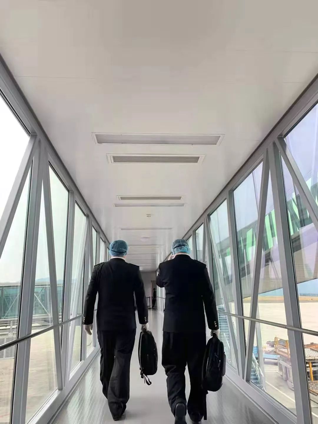 抵达停机位后,两人再次确认一切就位,向地服人员下达登机车靠桥指令,透过飞机舷窗和机组人员互竖大拇指示:“中国海关就位,请开舱门”!