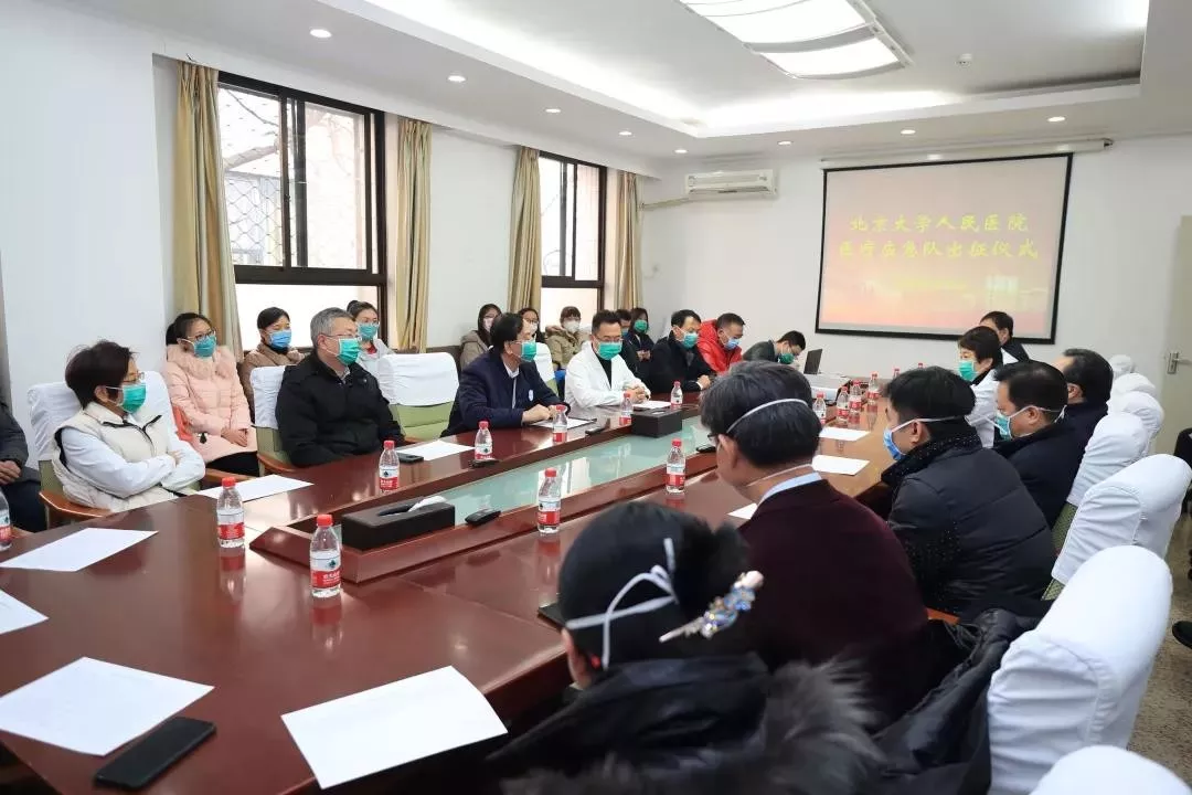 北京大学人民医院院长姜保国代表医院党政领导班子对队员们表现出的责任与担当表示由衷敬意。(图片来源:北京大学人民医院)