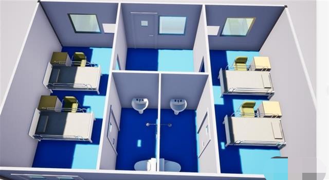1月31日,由武汉地产集团组织实施、中建三局承建的雷神山医院发布隔离病区整体效果图和病房样板模型。截至1月31日中午12时,雷神山医院项目总体建设进度完成55%,隔离病房完成50%;集装箱总计进场2149间,现场已完成吊装130间,并进行房间内管线安装;医护人员生活区完成75%。