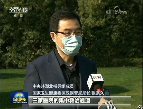 中央赴湖北指导组成员 国家卫生健康委医政医管局局长 张宗久:我们近日已经开通了三家医院的集中救治通道,再建三家集中救治的医院。我们相信通过齐心协力,一定会把重症患者的救治、抢救成功率进一步提高。