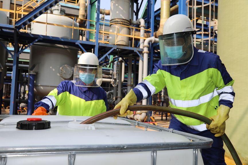 中国石油吉林石化公司第一时间抽调精干力量,加班加点生产84消毒液的主要原料次氯酸钠。