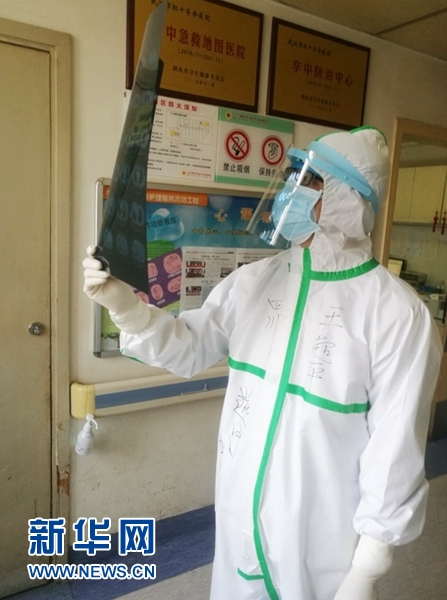 今天正式进入隔离病房,于早上07:30赶往武汉市红十字会医院发热七病区。我和西南大学同仁结伴而行,相互提醒,在清洁区互相配合,穿上隔离衣,戴上双层乳胶手套,穿上双层鞋套,加上防护面屏。来到病区以后,开始也有些忐忑不安,但看到大家都忙而有序、各司其职,心里也就淡然很多了。和上班的老师交接工作以后,我们开始查房,巡视患者、查看病历,确定危重症患者需要的治疗方案。