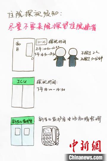 中新网金华2月1日电(记者 奚金燕)新型冠状病毒感染的肺炎疫情突发,牵动着无数人的心。浙江浦江90后护士陈蓉菁平时热爱绘画,之前就曾巧绘“神秘手术室”走红网络,这一次她又拿起手中的画笔,在向抗疫一线“白衣战士”致敬的同时,也用通俗易懂的形式让更多老百姓了解就诊流程和住院须知。