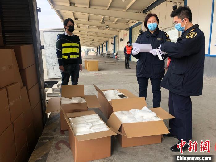 图为海关关员对进境疫情防控物资进行查验。 邓敏 摄