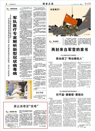 84消毒液在使用时切记要注意以下几点,确保安全和有效。请关注今日出版的《解放军报》的详细报道——