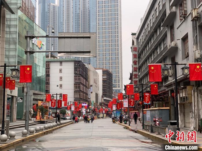 2月1日,长沙坡子街街边挂满灯笼、红旗,弥漫着新春气息。 鲁毅 摄