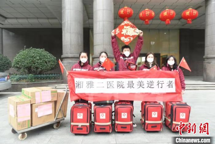 湘雅二医院的医护人员从长沙出发,支援湖北。湘雅二医院供图。 钟欣 摄