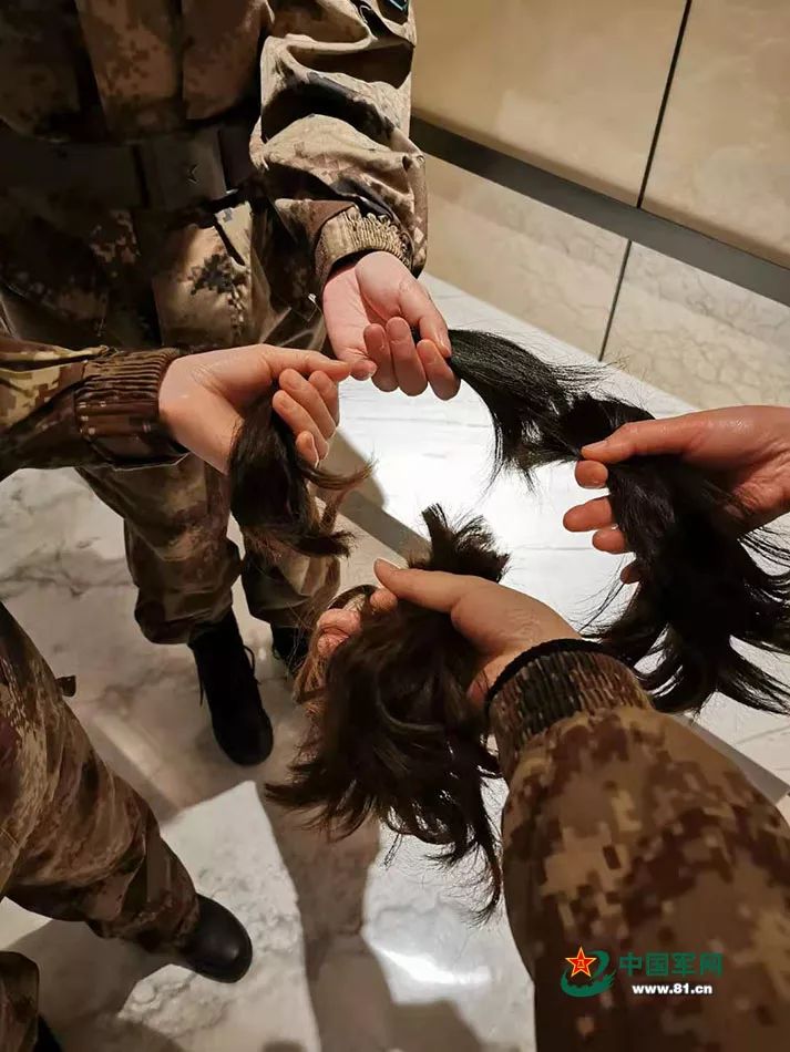 1月26日上午,为了方便穿脱防护服,医疗队的几位女队员果断决定剪短好几年时间才蓄留出的秀发。