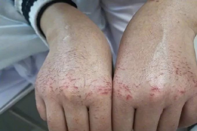 这是一双小姑娘的手,父母看了会很心疼的吧。