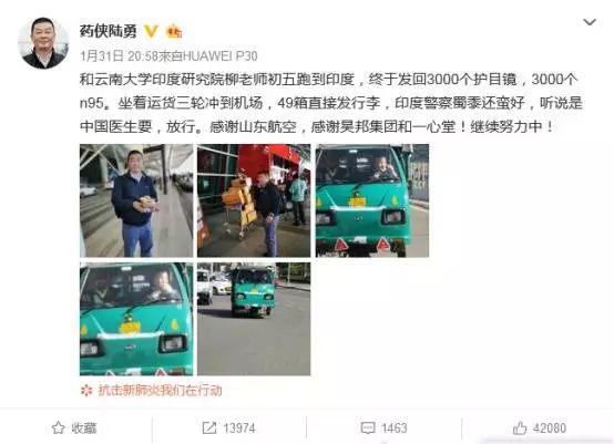 “《药神》原型”陆勇印度运口罩支援抗疫。