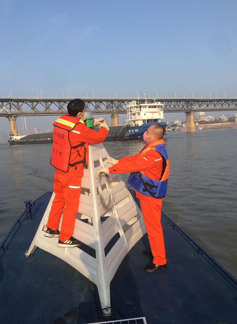 武汉航道处职工维护航标,确保航道畅通。杨慧 摄