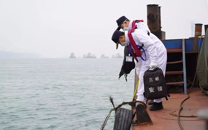 长江三峡通航管理局海事执法人员对待闸船舶进行安检。李光强 摄