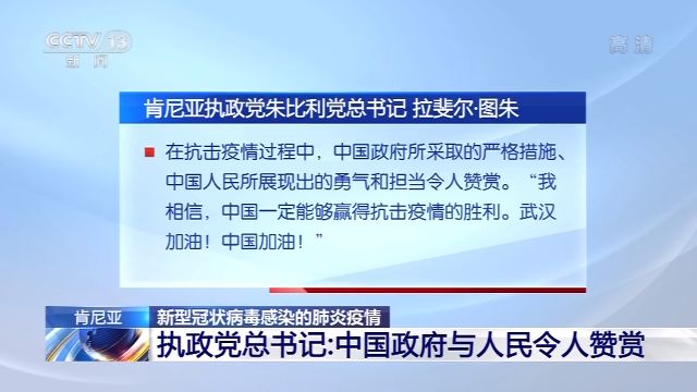 肯尼亚执政党“朱比利党”总书记拉斐尔·图朱表示,在抗击疫情过程中,中国政府所采取的严格措施、中国人民所展现出的勇气和担当令人赞赏。“我相信,中国一定能够赢得抗击疫情的胜利。武汉加油!中国加油!”