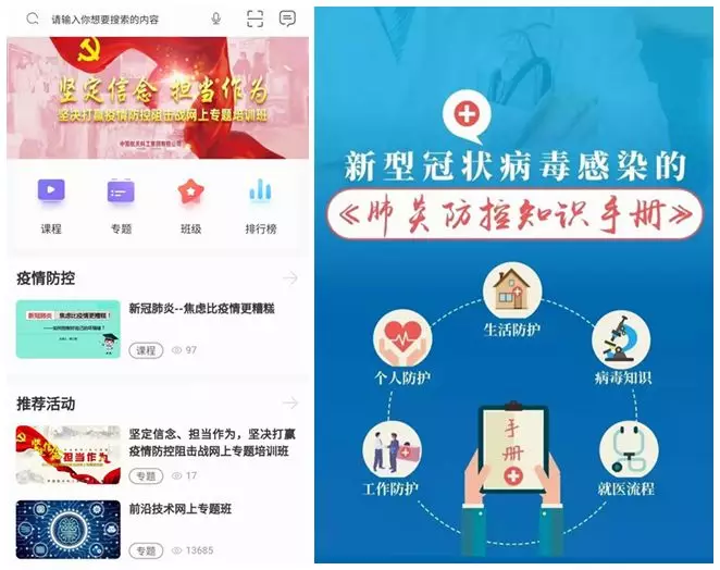 2020年伊始,突如其来的新型冠状病毒疫情牵动着所有人的心。航天科工积极响应政府号召,落实重大突发公共卫生事件一级响应机制,先后两次调整恢复上班时间。在一个隔绝疫情,不隔绝爱的特殊时期,航天云课堂深入落实集团公司党组要求,为集团公司全体党员和广大职工精心策划了“坚定信念、担当作为,坚决打赢疫情防控阻击战”网上专题培训班,并上线“新冠肺炎,焦虑比疫情更糟糕——如何控制好自己的坏情绪”和“新型冠状病毒感染的《肺炎防控知识手册》”两门特色课程。