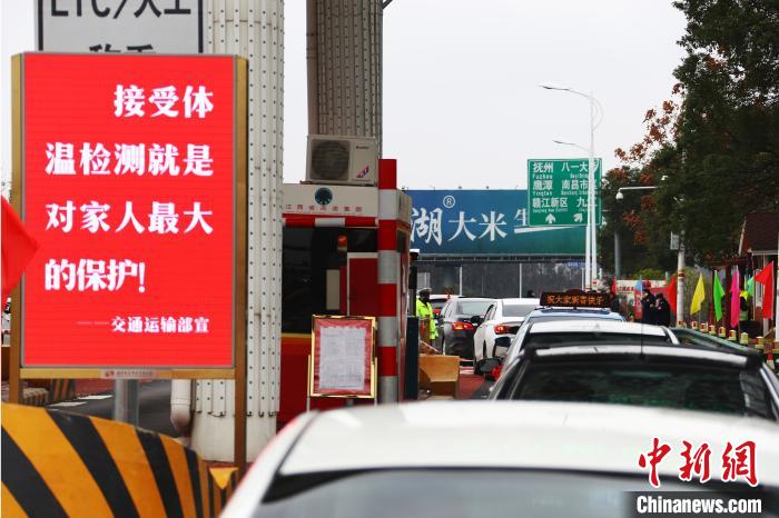 图为南昌昌北机场收费站正在对车辆司乘人员进行体温检测。 刘占昆 摄