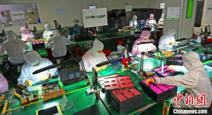 图为2月4日,江西泰和一家公司正式复工复产,加紧生产红外体温检测仪配套显示屏,保障医疗防控应急物资的供应,助力疫情防控。 邓和平 摄