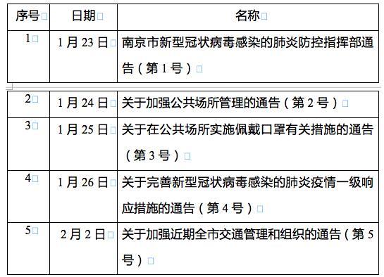 注:因近期发布的疫情防控工作通告较多,拟对所有以市政府、指挥部、指挥部办公室名义发布的通告统一编号。截至目前,已发布5则通告,具体目录如下: