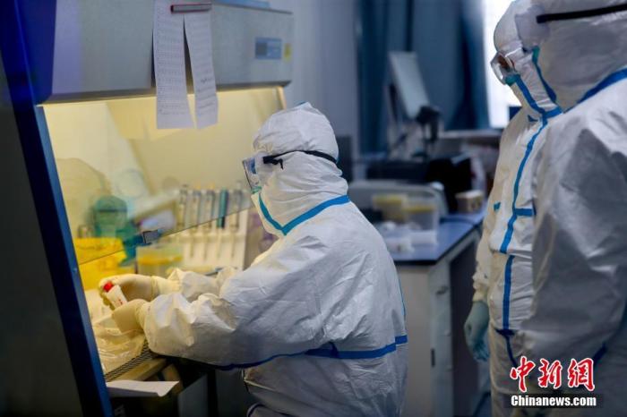 2月4日,武汉市疾控中心检测组工作人员进行病毒检测。中新社记者 张畅 摄