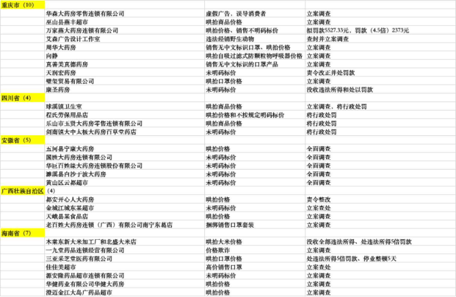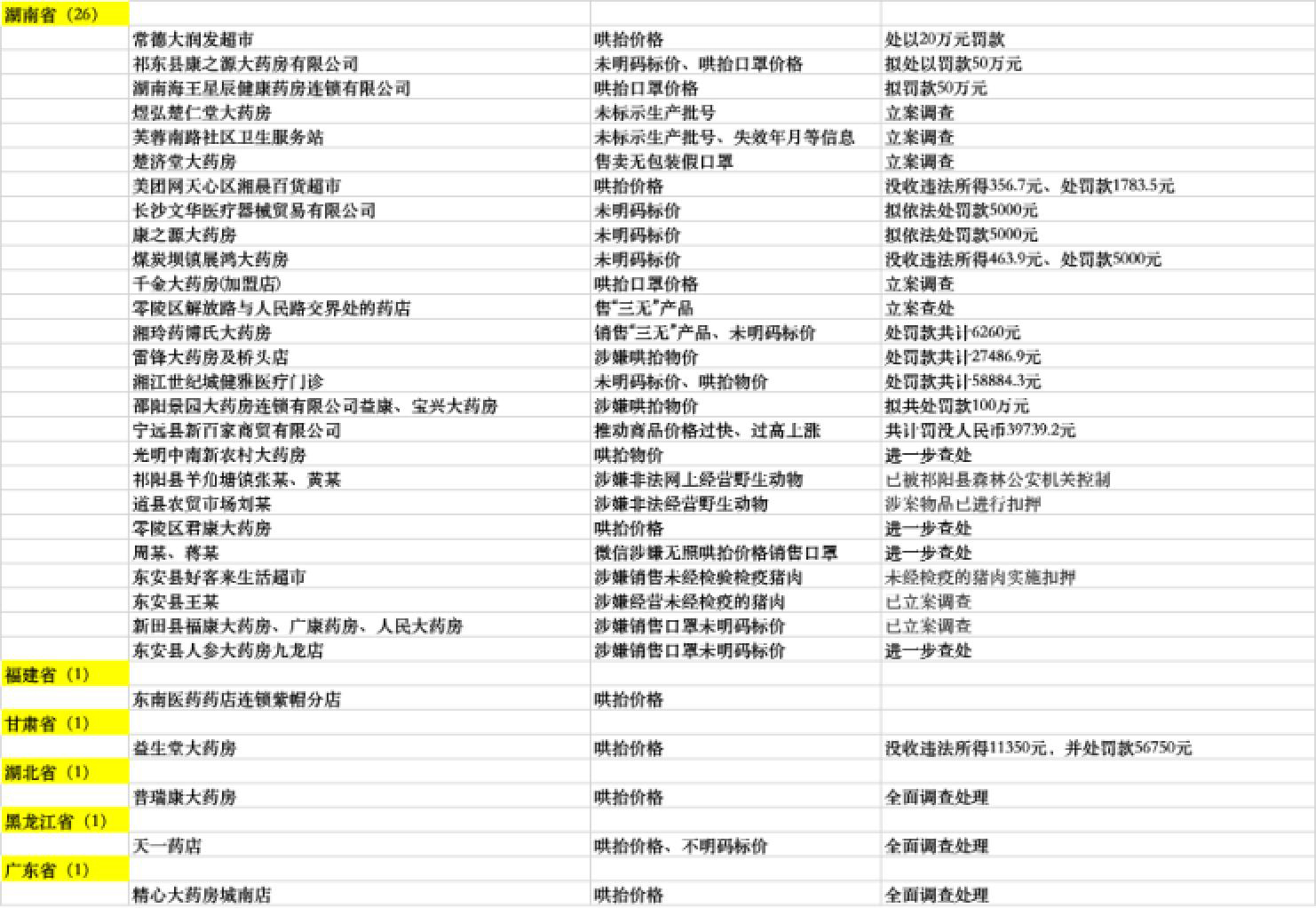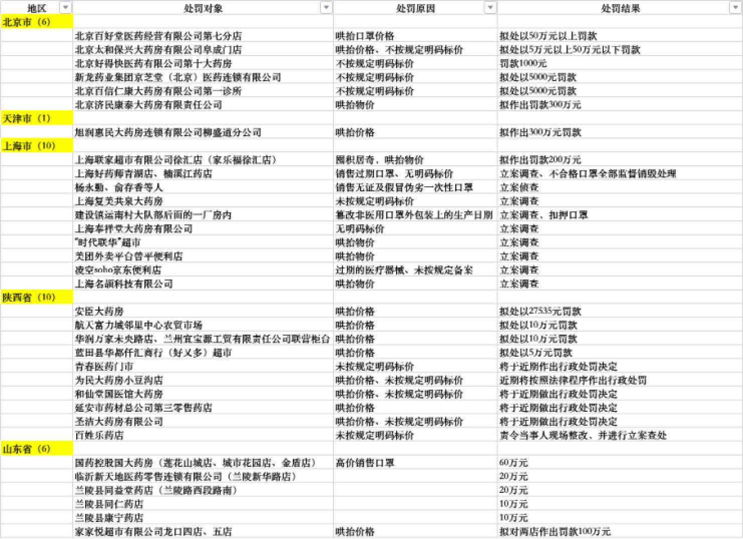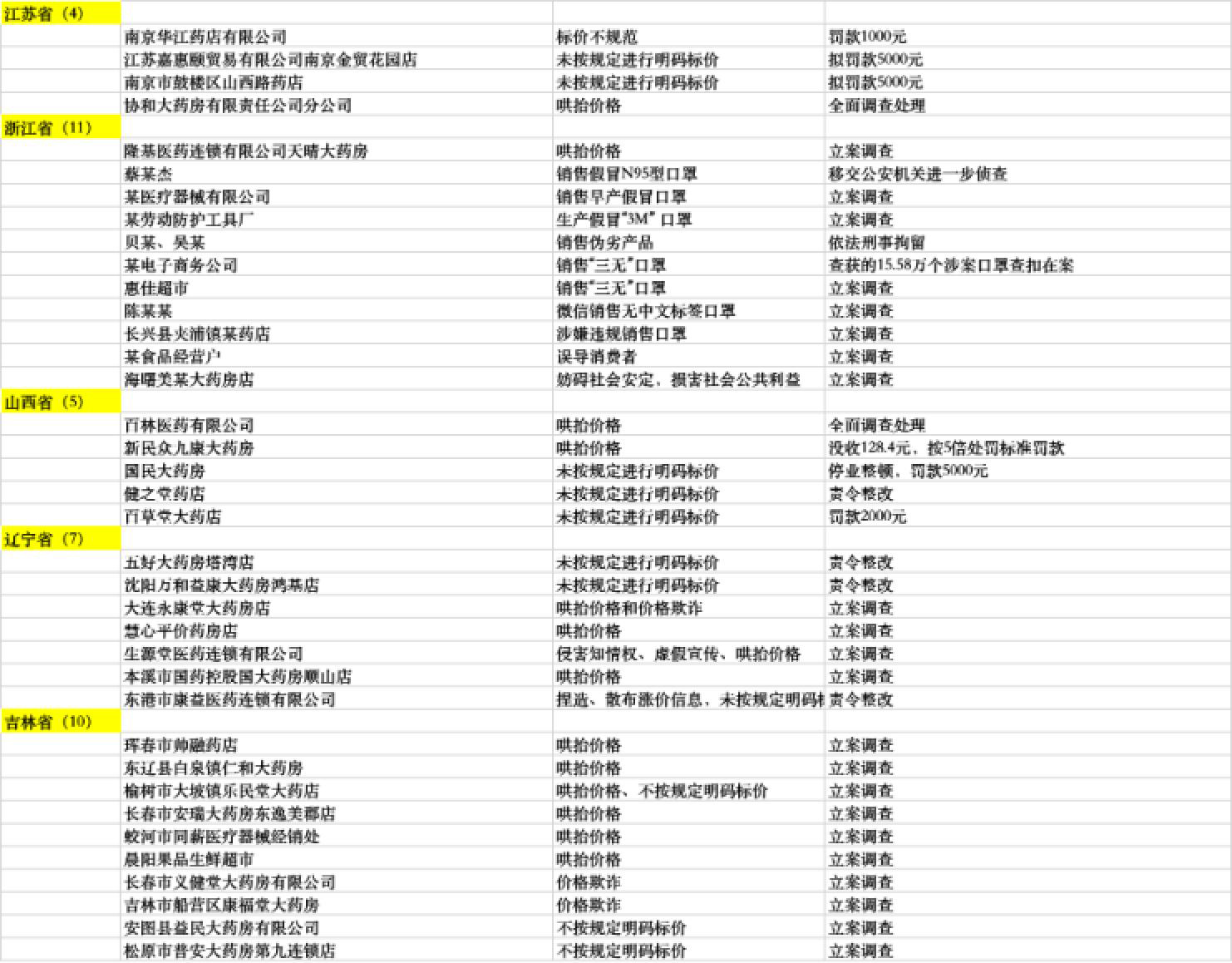 附:疫情期间因违法行为被处罚企业及个人名单(不完全统计)