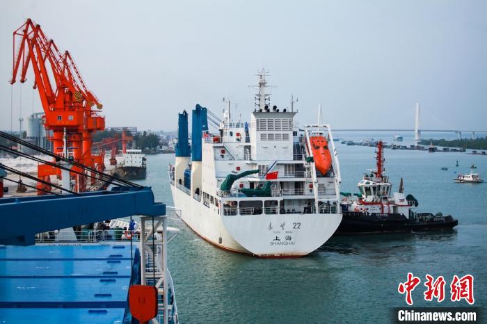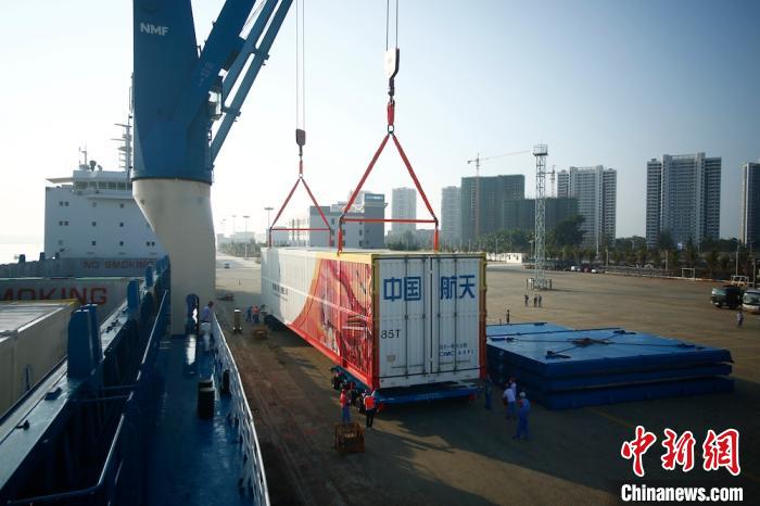 中新网文昌2月5日电 (亓创 高超 陆劲竹)随着最后一个火箭产品集装箱安全离开清澜港码头前往文昌航天发射场,远望号火箭运输船队5日圆满完成了长征五号B遥一运载火箭的海上运输任务。